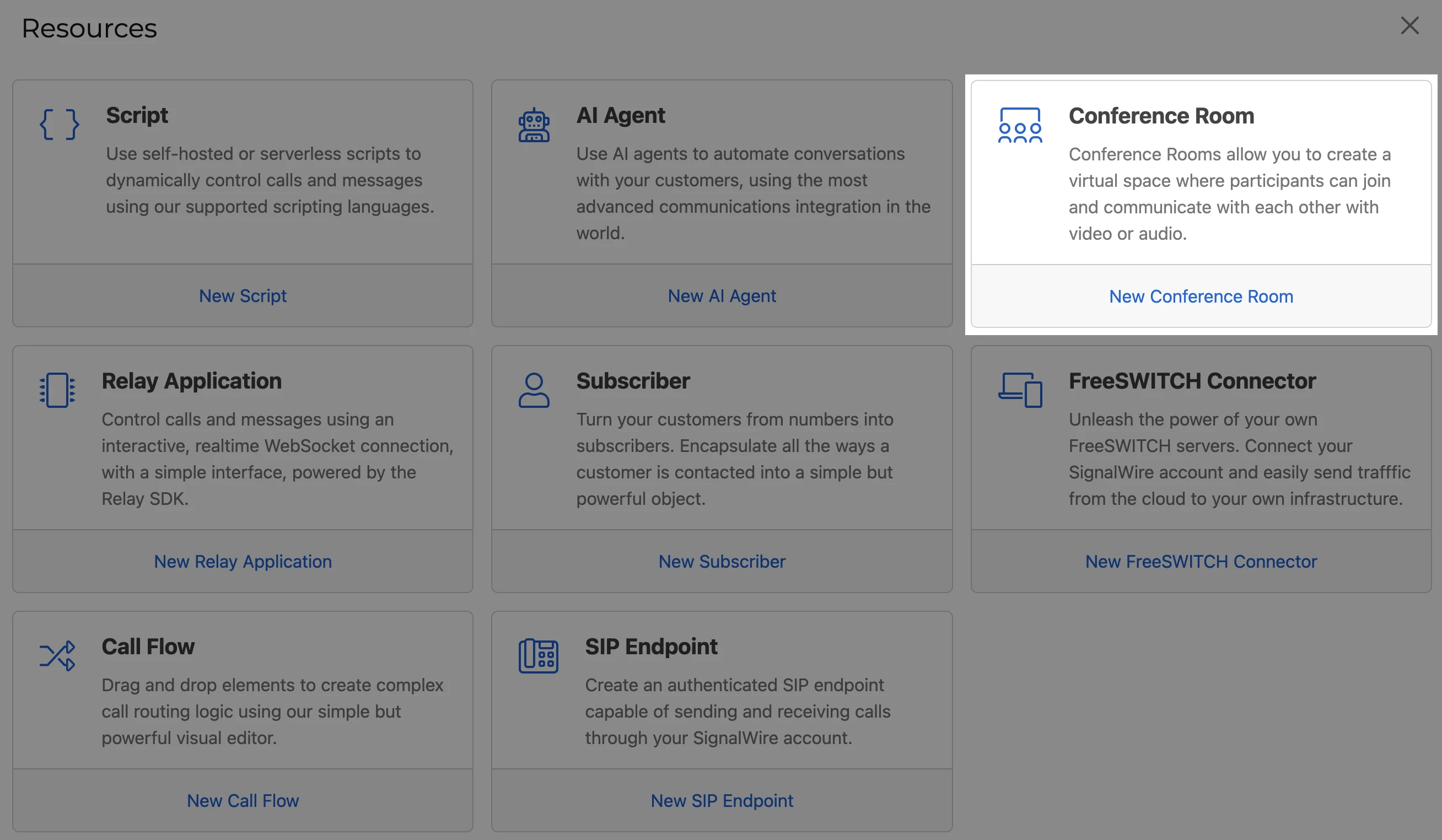Create and manage all Resources from the SignalWire Dashboard.